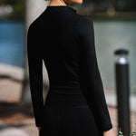 Made from a luxuriously soft, lightly brushed fabric that hugs you in all the right places, this versatile styling piece keeps you comfy and covered year round. Hits right at the waist, featuring contouring front seams, a stylish mock neck, and a sculpted fit designed to flatter small chests—so you feel supported, streamlined, and ready to go from the moment you zip up.