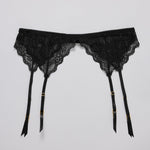 The finishing touch to your Fine Lace set. Designed to pair perfectly with our Lace Lift Up Corset and All Over Lace Lift Up Bra, and Lace String Thong, the Lace Garter completes our most indulgent sets yet. It brings the full look together—equal parts delicate and daring. Featuring our signature lace veneer and a customizable hook-and-eye fit at the waist, it’s the definition of sultry meets sophistication.Materials:Lace: 89% Polyamide, 11% Elastane.Made ethically in Colombia.