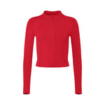 Made from a luxuriously soft, lightly brushed fabric that hugs you in all the right places, this versatile styling piece keeps you comfy and covered year round. Hits right at the waist, featuring contouring front seams, a stylish mock neck, and a sculpted fit designed to flatter small chests—so you feel supported, streamlined, and ready to go from the moment you zip up.